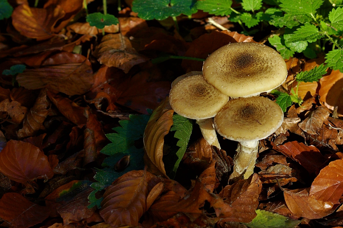 Pilze bringen noch ihre Fruchtkörper hervor und sind für den Naturfotografen oft reizvolle Motive am Boden. Sie bereichern auch das Menü mancher Tiere. Waldtiere sind auch vom herbstlichen Rhythmus geprägt, müssen Vorräte für den Winter sammeln und verhalten sich dabei nicht selten großzügig beim Einhalten der Fluchtdistanz.
