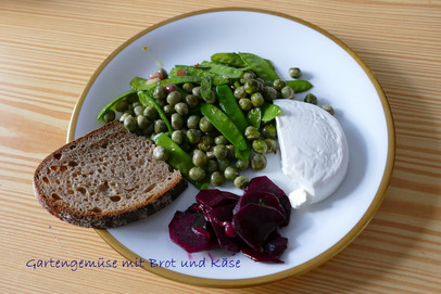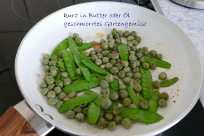 Es sind zwar immer nur Tellerportionen zu ernten, da es jeweils nur wenige Pflanzen sind, aber dafür gibt es eine leckere gemischte Vielfalt auf dem Teller. Seit ich vor einigen Jahren eine Emaille-Pfanne bekommen habe, liebe ich frisch geerntete und nur ganz kurz in etwas Butter oder Öl geschmorrte Gemüse. Dazu nur etwas Salz und Pfeffer und passende Kräuter.
