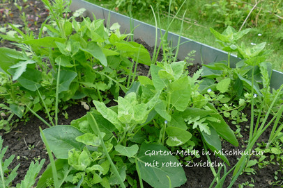 Um hier auch für den Erhalt der Kulturpflanzenvielfalt zu sorgen, baue ich samenfestes Saatgut diverser eher unbekannter Gemüsesorten an. Sie lassen sich im Gegensatz zu F1-Hybriden gut selbst weitervermehren und sie entwickeln sich auch im Laufe der Jahre hin zu Lokalvariationen, die besser mit dem Wetter und den Böden in Dortmund zurechtkommen. Wie zum Beispiel eine Grüne Garten-Melde, dich ich von einem NABU-Kollegen bekam und die mittlerweile seit über 70 Jahren hier in Dortmund angebaut wird.