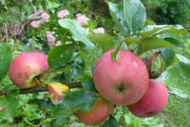 -> Grüne Pflanzen als Produzenten von Getreide, Obst, Gemüse, Laub und Sauerstoff durch Photosynthese (Foto-2 Apfelbaum)