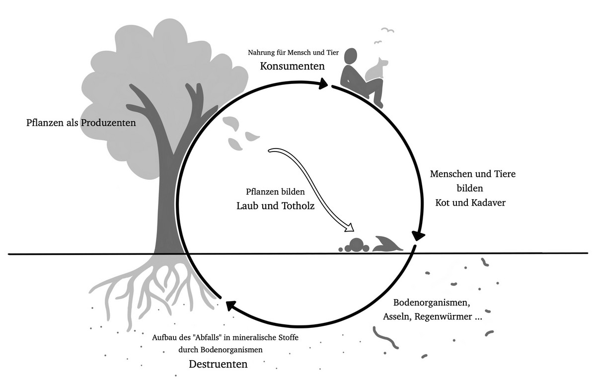 Jedes in sich gut funktionierende Ökosystem besteht aus Erzeugern (Produzenten) / Verbrauchern (Konsumenten) / Verwertern (Destruenten oder Reduzenten).