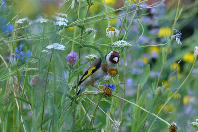 Die Körnerfressenden Stieglitze waren eher im Spätsommer im Garten, als die Kornblumen einer heimischen Saatgutmischung in Samenstand gingen. Jetzt höre ich ihren perlenden Gesang eher bei Spaziergängen unter den umliegenden Platanen, die noch Samenstände tragen.