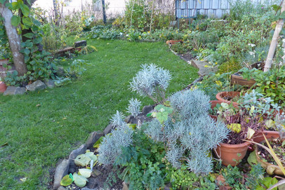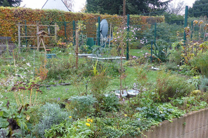 Alles in allem bietet dieser innerstädtische Ruhrgebietsgarten in Dortmund Aplerbeck, der mit sechs oder sieben anderen Gärten eine große Fläche in einem umliegenden Kreis von Ein- und kleinen Mehrfamilienhäusern liegt, wohl Nahrung für zumindest einen Teil der kulturbegleitenden Singvögel. Er ist aber mit seinen 300qm eindeutig zu klein, um mehr als ein bis zwei Meisen-Paaren pro Sommer einen Brutplatz zu bieten. Aber es gibt ja auch noch die anders strukturierten Nachbargärten. Zum Nordosten grenzt der Nebengarten mit einer alten, breiten, mehrere Meter langen und über mannshohen Buchenhecke. Sie bietet ein wunderbares Versteck für alle Kleinvögel und vermutlich nisten hier auch einige von ihnen.