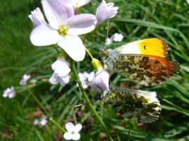 Jedoch zeigte sich bei steigenden Temperaturen plötzlich ein Schwarzmilan, der um die Spitze des Drachenfelses segelte. Eine eindrucksvolle Beobachtung, die das Bild der Wander- und Turmfalken noch abrundete. Auch andere Schönheiten der Natur zeigten sich, so z.B. zahlreiche Aurorafalter und Tagpfauenaugen.