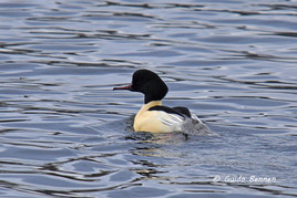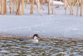 Am Ufer stehend richteten wir unsere Ferngläser, Kameras und Spektive auf die Wintergäste unter den Wasservögeln. Zu entdecken gab es u.a. mindestens 10 Gänsesäger, ein paar Steppenmöwen, Schnatterenten, Tafelenten, Zwergtaucher und dazu einen Silberreiher in weiter Ferne. Aufregend war die Beobachtung der drei Zwergsäger, die wegen ihrer ständigen Tauchgänge für die Besucher der Exkursion nicht immer leicht mit dem Fernglas zu verfolgen waren. Beobachtungskunst und Schnelligkeit waren gefordert.