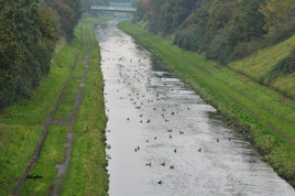 Zu sehen waren dabei eine eminente Anzahl an Stockenten sowie mehrere Krickenten , Schnatterenten usw. auf der träge dahin fließenden Emscher. Eine imponierende Sichtung war ein Bisam , der zwischen Laichkraut öfter auftauchte und anschließend in seinen Bau an der Uferböschung verschwand . An verbuschten Uferzonen zeigten sich vielfältige Kleinvogelarten als Stand - und Zugvögel.