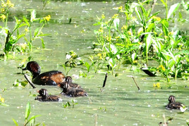 Vogelfreunde wissen es längst: Das sogenannte obere Bochumer Ölbachtal ist ein hervorragendes Gebiet zur Beobachtung der dort vorkommenden Artenvielfalt. Schöne vorsommerliche Tage motivierten auch uns mal wieder mit entsprechender Ausrüstung ,die dortigen sich harmonisch ineinander einfügenden Lebensräume wie Wälder, Wiesen, sumpfige Schilfgebiete und die ausgedehnte Flurlandschaft bei Bochum-Gerthe aufzusuchen. Am Harpener Hellweg Lütgendortmund, nahe der Stadtgrenze zu Bochum erfolgte zuerst der Einstieg in das Waldgebiet Berghofer Holz. Elegant verringerte hier über der angrenzenden Feldflur, ein Mäusebussard aus dem Blauhimmel kommend seine Flughöhe und kontrollierte im niedrigen Suchflug sein vermutliches Territorium. Im Wald am Bachbett- dort wo der Ölbach weiter in Richtung Bochum Werne fließt- ist wie schon oft am frühen Morgen unsere erste Station zur Vogelbeobachtung. Hier finden sich nicht selten mehrere heimische Waldvogelarten ein um ihren Durst zu stillen. Auffällig und fotogen auch ein länger anwesender Grünspecht. Nahe einem der Waldwege machte auf dem Horst ein junger hungriger Mäusebussard durch Lautäußerungen auf sich aufmerksam und ein junger Buntspecht übte noch das Fliegen. Nach kurzer Zeit ist als Mittelpunkt ein großer Waldteich erreicht, welcher zurzeit teilweise mit Wasserpflanzen zugewachsen ist. Im Gewirr der üppigen Vegetation hier und da faszinierendes Vogelleben wie juvenile Teich – und Bläßrallen, betreut von den Elternvögeln. Als Highlight nach langer Zeit mal wieder zu beobachten, ein Zwergtaucher mit vier seiner Jungvögel, auf Futtersuche in einem Areal zwischen verschiedenen Schwimmpflanzen und Schwertlilien. Im Verlauf des weiterführenden Weges aus dem Berghofer Holz, vorbei an bebuschten Feuchtflächen und bestellten Ackerflächen ,ist der Weg zur weiträumigen Feldflur mit angrenzenden kleinen Waldgebieten in Richtung Bochum- Gerthe bald erreicht. Hier lassen sich gefiederte Jäger wie Turm-und Baumfalke beobachten. Seit einiger Zeit auch ein einzelner Rotmilan. Ob er es bei der Sichtung auf noch junge flugunbeholfene und hudernde Feldsperlinge als Beute abgesehen hatte, sei dahingestellt. Kleine Wege und Trampelpfade führen uns in ein mit Buschwerk umsäumtes, weiträumiges Feucht -und Schilfgebiet. Aus den Büschen am Morgen ein vielstimmiges Vogelkonzert. Als Interpreten wurden Amsel, Singdrossel, Fitis, Zilp-Zalp, Mönchgrasmücke, Feldschwirl und Gimpel registriert. In nächster Nähe zu unserem Ansitz am Rande des feuchten und schilfbestandenen Gebietes, versuchte ein Sumpfrohrsänger an einem schwankenden Schilfhalm, fast pausenlos mit einem vielfältigen Spottgesang sich mit einzubringen. Später hörten wir noch kurz einige Quieklaute der seltenen Wasserralle. Ihre Anwesenheit im Dortmund-Bochumer Ölbachtal unterstreicht auch weiter den ökologischen Wert des Naturschutzgebietes.