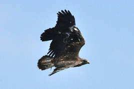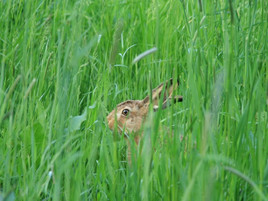 Ein spannender Luftkampf zwischen Rabenkrähen und einem Mäusebussard beendet hier die Beobachtungstour. Im dritten und letzten Ziel im so genannten Rosebecker Bruch zeigen sich gleich mehrere Rotrückenwürger (Neuntöter) von denen Petra gleich mit der Kamera im Anschlag einige auf den Chip der Kamera bannen konnte, was einem Feldhasen in seiner Sasse beim Zusehen nicht im geringsten störte.