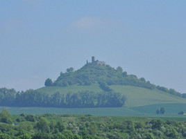Nach ca.achtzig Minuten Fahrtzeit taucht im Morgendunst hoch über der Warburger Börde, in der Ferne unser erstes Ziel auf - der Desenberg mit seiner alten Burgruine.