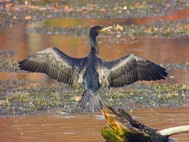 Die Beschreibung dafür folgt am Ende des Berichtes. Bei wunderschönem Herbstwetter trafen wir am See ein und waren sofort erstaunt über die große Anzahl an Vögeln, die wir schon ohne Fernglas ausmachen konnten. Im See ist noch eine große Menge der Wasserpest, welche ideale Futterbedingungen für die Vögel schafft.