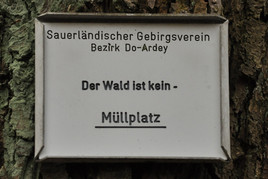 Die schon vor Jahren vom SGV an manchen Bäumen angebrachten Hinweisschilder , dass der Wald kein Müllplatz ist , hat sicherlich manchen Spaziergänger sensibilisiert .