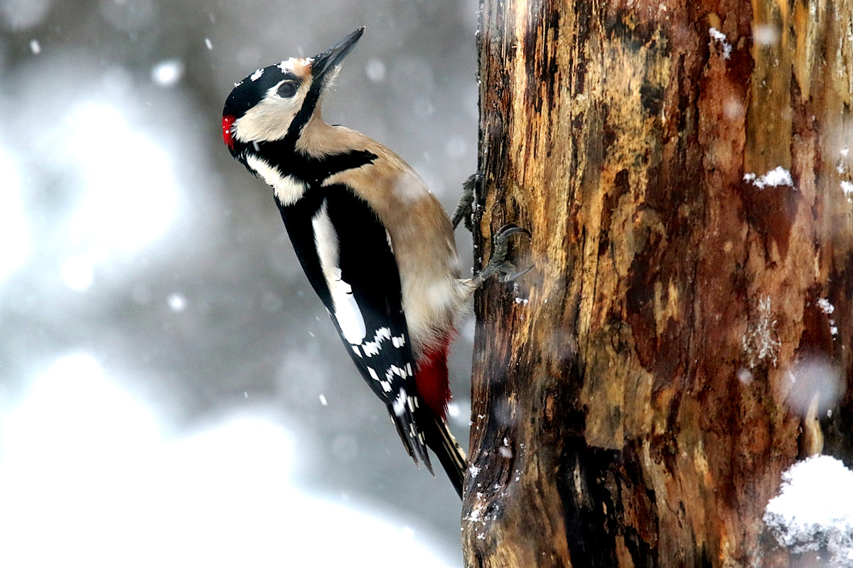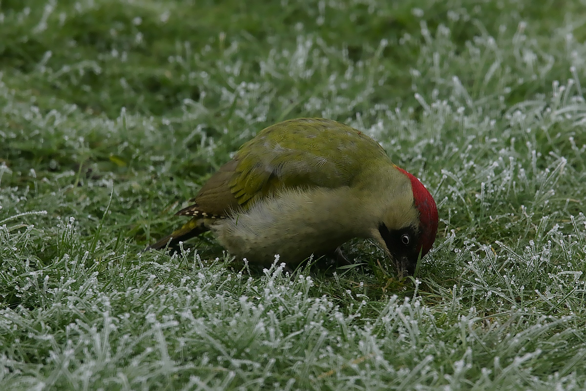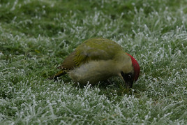 Was eine hungrige Vogelwelt anbetraf, so waren die Erwartungen zu mehr Sichtungen als im Wald, leider auch gering ausgefallen. Ein erhofftes, größeres Stelldichein mehrerer Wintervogelarten an der Zufütterstelle „Vogeltreff “ im Hausgarten blieb leider ebenfalls bis dato aus. Nur die täglich erscheinenden Nahrungsgäste wie der Buntspecht, welcher sich aus dem aufgeständerten alten Baumstamm aus Ritzen und Löchern an eingegebenes, artgerechtes Futter stärkte oder der an den Frosttagen anwesende Grünspecht, der öfter an mehreren Tagen unter gefrorenen Wiesenboden nach Ameisennestern suchte.
