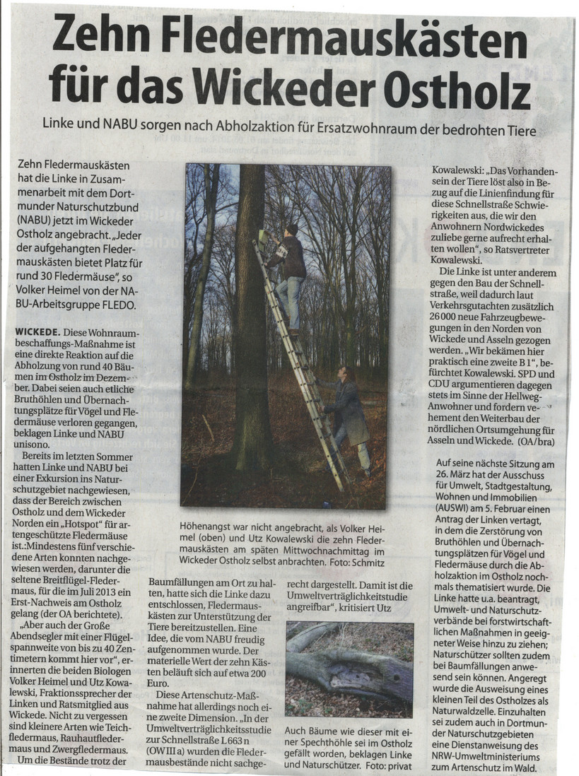 Zehn Fledermauskästen für das Wickeder Ostholz