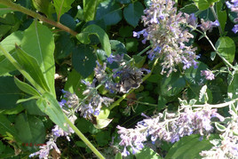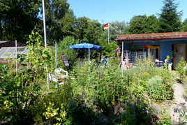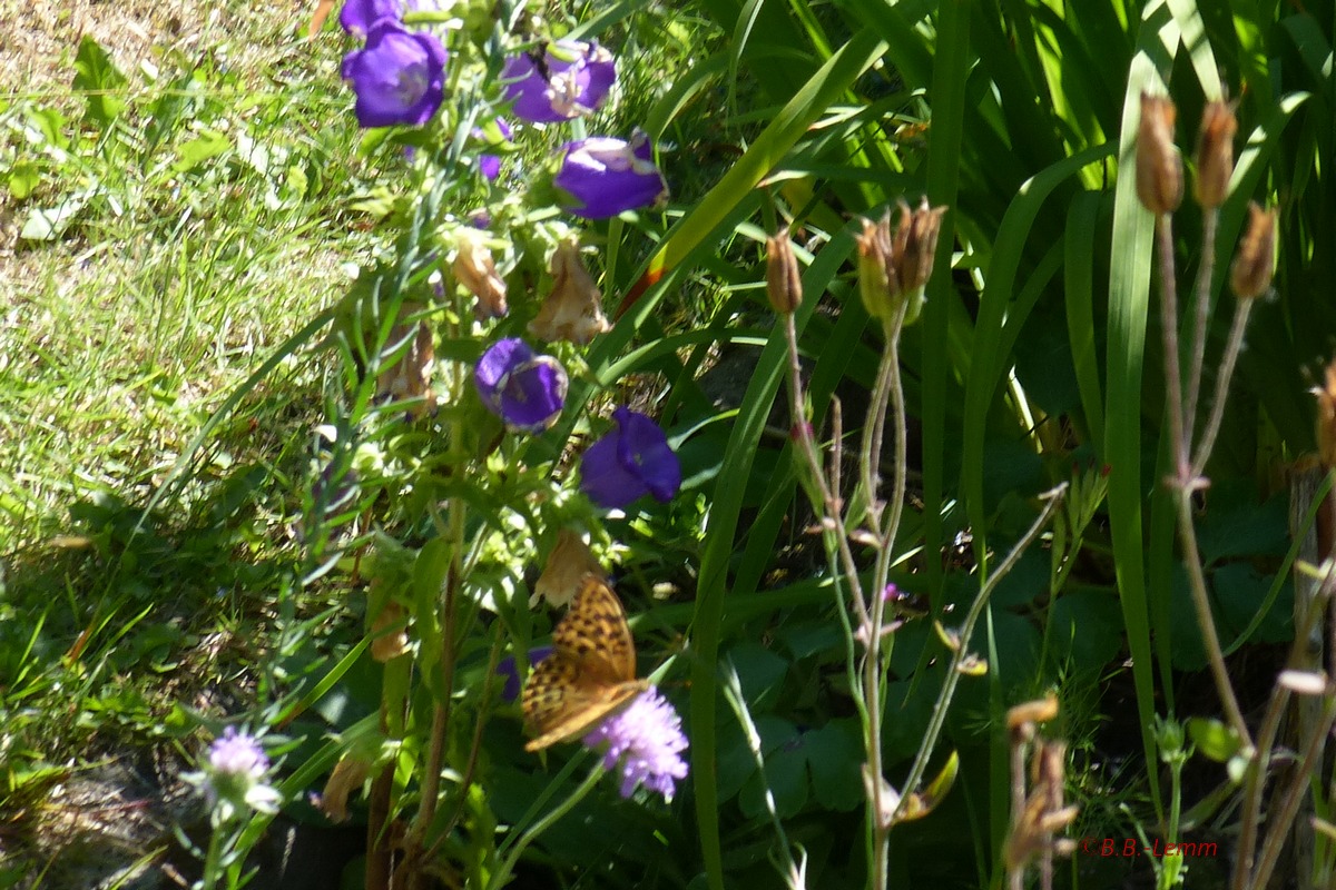 Am Sonntag, den 01.Juli kamen 15 Besucher zum diesjährigen Infotag. Die meisten bleiben mehrere Stunden und so ergaben sich neben der Schmetterlingszählung auch noch viele weitere Gespräche über naturnahes Gärtnern, Biodiversität und Insektenförderung im Garten. Brigitte Handy hatte uns kurzentschlossen mit einem kleinen Infostand unterstützt und mit vielen Besuchern Gespräche über die Arbeit des NABU geführt. Jochen Heinrich, der Schmetterlingsexperte aus Lünen war ebenfalls einige Stunden anwesend und hat wichtige Hinweise zur Unterscheidung der verschiedenen Weißlings-Falter gegeben. So hat die Sichtung neben dem Großen und dem Kleinen Kohlweißling ebenfalls den Grünaderweißling ergeben. Der Aurorafalter, der im Frühjahr häufig im Garten zu sehen war, fliegt um diese Jahreszeit nicht mehr. Höhepunkt war die kurze Sichtung des im Garten nur sehr selten zu sehenden Kaisermantels.