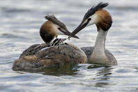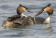 Immer wieder versichern sich die Haubentaucher durch einen kleinen Balztanz ihrer Partnerschaft, besonders nach kleineren Revierkämpfen mit einem anderen Haubentauchermann. Ein schönes Erlebnis, dass man aus dieser Nähe nur selten sehen kann. In den vergangenen Tagen war ich noch zweimal am Phoenixsee, um die Haubentaucher zu beobachten. Die beiden Jungtiere sind deutlich gewachsen, sie tauchen jetzt auch schon häufiger und die Eltern lassen sie kaum noch in ihr Gefieder schlüpfen.Zwei neue Brutplätze sind entstanden, ein Nistplatz im südlichen Bereich der Kulturinsel und ein Nistplatz auf einem der flachen Ufersteine des Südufers (in diesem Nest konnte ich zwei Eier sehen). Hoffentlich gelingt den Elternpaaren noch eine Aufzucht, denn die Haubentaucher, deren Nester sich so nah am Ufer und dem Spazierweg auf den flachen Steinen befinden, werden durch die zahlreichen Besucher des Phoenixsees immer wieder aufgeschreckt. In meinem Wanderblog www.dieSchlenderer.de habe ich noch weitere Bilder der Haubentaucher veröffentlicht.