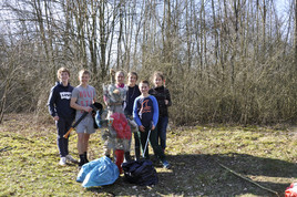 Eine kleine Gruppe sammelte das Gelände nach herum liegendem Müll ab. Die motivierten Kids erreichten dabei auch schwer zugängliche Stellen. Wieder einmal war erschreckend wieviel Müll verschiedenster Art in die Natur geworfen worden war. Der tragischste Fund allerdings war eine tote Maus, die ihr Leben in einer Bierflasche verloren hatte. Dieses berührte nicht nur die Kinder und zeigt nur eine der Gefahren, die durch achtlose Müllentsorgung entstehen.