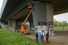 Bereits kurz nach unserer Anfrage bekamen wir die Genehmigung zur Montage von acht Mauerseglerkästen an der B236 Brücke in Dortmund-Hörde. Nun konnte die Gemeinschaftsaktion zwischen dem Tiefbauamt und dem NABU Dortmund beginnen.