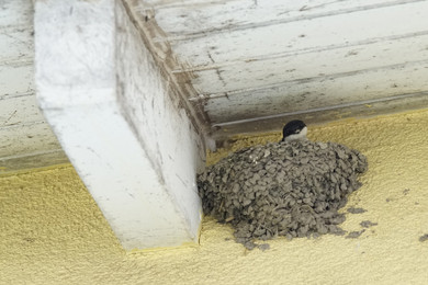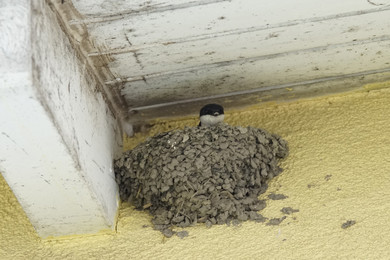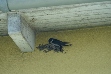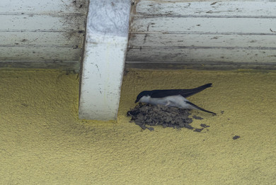 „Schwalben bringen Glück“ - in der Eichholzstraße in Dortmund-Lichtendorf freuen sich die Hausbesitzer über ihre tierischen Mitbewohner unter dem Dachvorsprung. Seit 4 Jahren kehren die Mehlschwalben immer wieder aus ihrem Winterquartier in Afrika zurück, um genau hier standorttreu zu brüten. Aktuell sind zwei Nester besetzt und ein drittes im Bau. Angesichts der jetzt trockenen Witterung ist allerdings fraglich, ob dieses dritte Nest jemals fertig werden wird - Lehmpfützen sind nun rar geworden. Die menschlichen Hausbewohner akzeptieren die Mehlschwalbennester gerne, auch an der verputzten und gestrichenen Fassade. Selbstverständlich gab es dafür vom NABU Dortmund am 15.06.2022 die Auszeichnung „Schwalbenfreundliches Haus“.