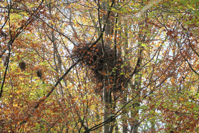 Die Horstbäume werden zwar nicht markiert, damit eventuelle schießwütige Zeitgenossen nicht auf dumme Gedanken kommen, aber auch auf sie wird vom NABU ausdrücklich hingewiesen und die Koordinaten werden gespeichert, sodass sie nach Möglichkeit geschützt werden können. Ein paar Horste, wahrscheinlich von Mäusebussard und Habicht, konnten wir entdecken.