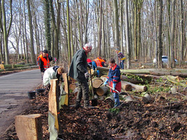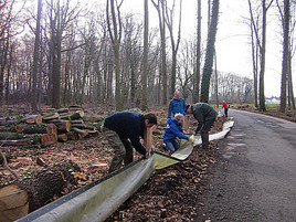 Am Samstag den 7. März traf sich weider einmal eine Gruppe von 15 fleißigen Helfern um im Dorneywald den Krötenzaun aufzubauen. Der Termin mußte vorher zweimal wegen Krankheit verschoben werden und so hatten wir Anfang März schon perfekte Bedingungen für einen Außeneinsatz. Für den Zaun wurde es jetzt allerdings auch höchste Zeit, da schon für den
