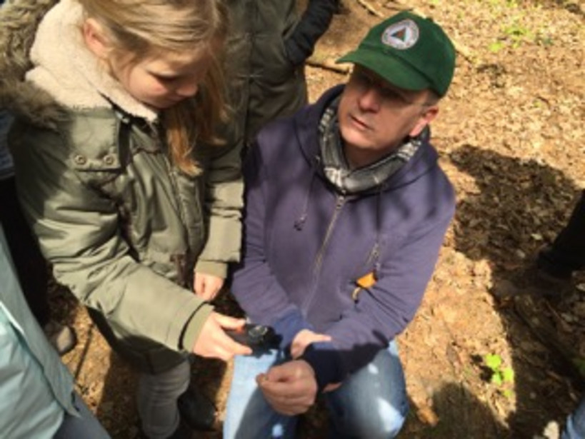 Bei kühlem Aprilwetter trafen sich die NABU Kids auf dem Ebberg mit Roger Bähr von der Ameisenwarte NRW. Mit Lupen und viel Geduld wurde dort ein Ameisenhaufen von der Großen Roten Waldameise untersucht. Trotz des Wetters wagten sich einige Ameisen aus ihrem schützenden Haufen. Wir beobachteten sie sehr intensiv bei dem Transport von Nistmaterial. Roger erzählte uns sehr viel interessante Details über das Leben der Ameisen und der Organisation ihres Staates. Er gab uns auch viele Tipps wie wir in Zukunft auch den Ameisen bei uns im Garten, die keine Haufen bauen helfen können. Denn sie sind sehr nützlich. Zum Beispiel verbreiten sie den Samen von den Veilchen.