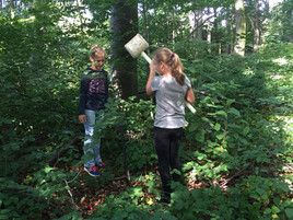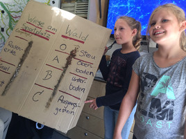 Besonderen Spaß hat ihnen der Einsatz des Pürckhauer-Bohrstocks gemacht. Mit viel Schwung und Zielgenauigkeit wurde der hohle Bohrstock in den Boden getrieben. Anschließend konnten die Kids anhand der Erde genau erkennen wieviele Horizonte der Boden unter ihren Füßen aufwies. Dabei verglichen sie den Boden unter der Wiese am Sportplatz mit dem Waldboden. Der Waldboden schnitt in ihrer Bewertung viel besser ab. Viel mehr Lebewesen finden dort Raum und Nahrung zum Leben.