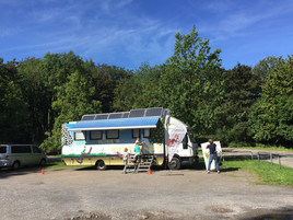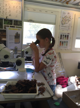 Wie jedes Jahr am letzten Tag in den Sommerferien besuchte uns der Lumbricus der Umweltbus mit Ottmar Hartwig. Der Umweltbus ist ein fahrendes Klassenzimmer mit vielen Gerätschaften, mit denen man die Luft, das Wasser, den Boden oder Lärm untersuchen kann. Bei uns stand dieses Jahr bei brütender Hitze im Dorneywald der Boden auf dem Programm. Die NABU Kids untersuchten die Laubstreu und fanden unter dem Mikroskop viele interessante Lebewesen wie Springschwänze, Tausendfüssler, Kellerasseln, Schnurfüsser usw. Von Ottmar lernten sie viel über Räuber und Beutetiere, über Wasser und CO2 im Boden und wie viel Boden jeden Tag in Deutschland bebaut wird.