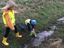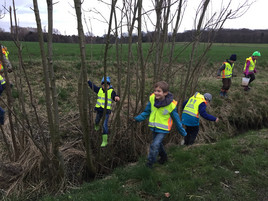 Die NABU Kids ließen sich die Laune davon aber nicht verderben. Sie erlebten viele Abenteuer in einem kleinen Bach und lernten das Gummistiefel im Matsch hängen bleiben können und zu viel Schwung zu einem sicheren Vierfüßlerstand führen kann.