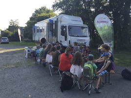 Wie jedes Jahr besuchte uns der Lumbricus, der Umweltbus von der NUA am letzten Tag der Sommerferien. Dieses Jahr hatten wir das Thema „Lärm“. Regina von Oldenburg erzählte uns an diesem heißen Tag im kühlen Schatten vieles über Gebärdensprache, Laute zur Kommunikation schöne und schädliche Geräusche im Alltag. Dann eilten wir ausgerüstet mit Lärmpegelmessgeräten in Kleingruppen in die Umgebung um herauszufinden, wo es laut ist und wo es angenehm leise ist. Auf der Autobahnbrücke erreichten wir Werte von 98dz. Im Wald dagegen war es bei 10 dz sehr leise. Die Kinder wurden zu Lärmforschern und hatten dabei viel Spaß. Viele Eltern luden sich auf ihren Wunsch hin eine App zum Lärm messen herunter um das häusliche Umfeld auch untersuchen zu können.