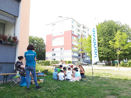 Unter dem Motto "Insektenbeobachtung im PikoPark" in Dortmund-Westerfilde, zwischen Kiepeweg und Zum Luftschacht, gab es am 20. Juli 2022 eine Kinderaktion im dortigen Vonovia-Wohnquartier. Bei insektenfreundlichem Wetter (es war ganz schön heiß) begeisterten sich bis zu 10 Kinder gleichzeitig und insgesamt 15-20 Kinder für die Stationen "Beobachten", "Informieren" und "Malen". Zum Schluss wurden noch eifrig für den Balkon Wildbienenhotels aus einem Lehm-Sand-Gemisch und Konservendosen gebaut.