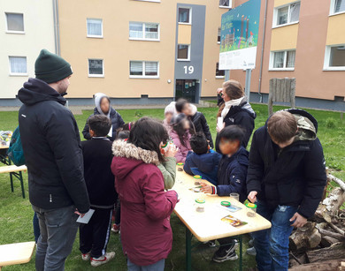 Unter dem Motto "Tiere im Boden" gab es in den Osterferien am 13. April 2023 wieder eine Kinderaktion im PikoPark im Vonovia-Wohnquartier Dortmund-Westerfilde, zwischen Kiepeweg und Zum Luftschacht.