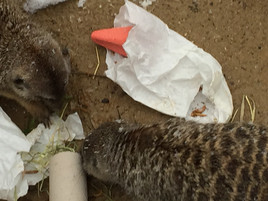 Statt in einem warmen Raum eine Weihnachtsfeier zu veranstalten, machten sich die NABU Kids bei Schnee und Kälte in den Zoo auf. Sie hatten für einige Tiere Geschenke im Gepäck. Marcel von der Zooschule führte uns zu den verschiedenen Gehegen. Er wusste zu jedem Tier eine spannende Geschichte zu erzählen und kannte alle mit Namen. Wir durften zuerst die Trampeltiere füttern. Dilara und Merle waren sehr verzückt über unsere Mitbringsel. Ihnen machte das Wetter gar nichts aus. Weiter ging es an den Stachelschweinen vorbei zu den Orang-Utans. Toba und Tao tauschten mit Marcel Papierschnipsel gegen eine Belohnung. Walter, das beeindruckende Männchen, beobachtete dabei alles genau und bekam auch seinen Anteil. Dann besuchten wir das Faultier Julian. Er turnte für seine Gattung erstaunlich behände über unseren Köpfen herum. Glücklicherweise fiel er keinem von uns auf den Kopf. Den Abschluss bildeten die Erdmännchen. Für sie hatten wir Leckereien in Papiertüten und Papprollen vorbereitet. Nach der Geschenkübergabe packten die kleinen Mangusten begeistert unsere Weihnachtsgeschenke aus. Zwischendurch mussten sie sich aber immer wieder unter der Rotlichtlampe aufwärmen, weil der herab rieselnde Schnee und der kalte Wind die kleinen Tiere zum Zittern brachte.