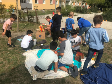 Insgesamt rund 20 Kinder vom Offenen Ganztag der Westhausen-Grundschule und aus dem Wohnquartier verzierten Meisenkästen, bauten Vogeltränken, malten Vogelbilder und erfuhren so manches über die Vögel in unserer Stadt. Zum Schluss wurden mit Hilfe von Vonovia die Nistkästen und auch Fledermauskästen im Quartier aufgehängt. Die nächste Aktion ist im Oktober geplant.