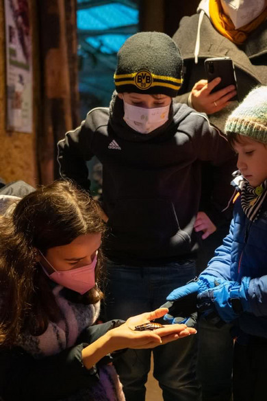 Zum Dank wurde unsere Kinder- und Jugendgruppe vom ersten Vorsitzenden Marcel Stawinoga in den Dortmunder Zoo eingeladen, wo der Verein seinen Sitz hat. Nach der Übergabe des Geschenks durften die vier Plumploris, die im Zoo Dortmund leben, besucht werden. Unsere Kinder und auch Jugendlichen stellten Fragen und lernten viel über die kleinen Primaten und die so wichtige Arbeit des Vereins. Das absolute Highlight war für alle die Plumploridame Rosi zu füttern, wobei auch das Futter genauestens betrachtet wurde.