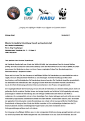 die Verbände Gesellschaft zum Schutz der Wölfe (GzSdW), der International Fund for Animal Welfare (IFAW), der Naturschutzbund Deutschland (NABU) sowie der World Wide Fund For Nature (WWF) möchten gemeinsam ihre Bedenken zu dem von ihrem Hause vorgelegten Entwurf der Brandenburgischen Wolfsverordnung – BbgWolfV äußern: